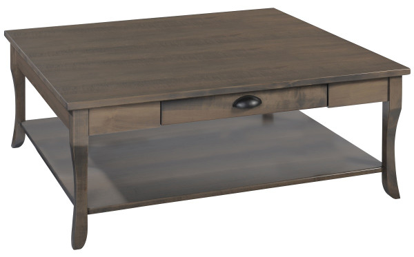 Transitional flared legs and a hand-applied finish add so much character to this standout piece. Measuring 36"W x 36"D, our Abernathy Square Coffee Table will fit perfectly in front of a sofa or loveseat. A dovetailed drawer is affixed to full-extension, soft-close slides. Constructed using a mortise and tenon joinery method, rest assured this coffee table will serve your family for generations.Get started designing your living room by deciding which wood and stain combination would best fit your living space. Each Abernathy Square Coffee Table will be topped with an industry-leading catalyzed conversion varnish.