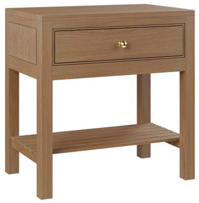 A single, soft-closing drawer with a subtly framed front and a sleek brass knob provides a quiet, smooth operation. It's ideal for storing bedside essentials like books, glasses, or electronics. The lower shelf offers additional storage or display space, perfect for baskets, magazines, or decorative accents, while its slatted design adds a touch of texture and sophistication.