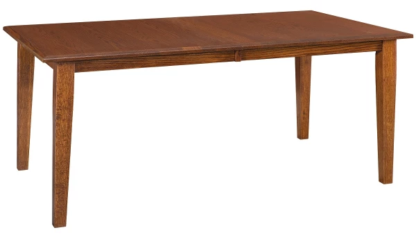 Our Baxter Place Table is a solid wood dining room table with up to four 12" expansion leaves. At a thickness of one inch, the table top is capable of storing four leaves but is also available as a solid piece. Seating a party of ten is easy when you include optional leaves in this expandable hardwood table. Arm chairs are accommodated by the 26” 1/2 clearance from floor to apron. Multiple edge options are available on the rectangular top to ensure your Baxter Place Table is one of a kind.Create some history of your own around our Baxter Place Table, just be sure to get all the leaves you think you may need when you place your order. Your tabletop will be hand-cut and crafted as a solid piece to ensure the grain is matched perfectly. Leaves are cut afterward and wooden pegs are installed so that a snug fit and a lifetime of use are assured. To achieve the look pictured, order your Baxter Place Table in Oak with a Burnished Honey finish.