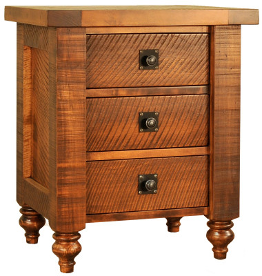 Unique hardware adorns the front of each dovetailed drawer on your Bayberry Nightstand while it sits atop tulip bun feet. For durability and ease of access, we have assembled each drawer using dovetailed joinery and full-extension slides. A massive 1 3/4" thick top caps off the case good while the textured appearance defines it.Shown in a Weathered Maple stain, the Bayberry Nightstand can be customized in any Rough Sawn Maple finish. Indicate your specifications using the options menu and our Amish craftsmen will build the nightstand to order.