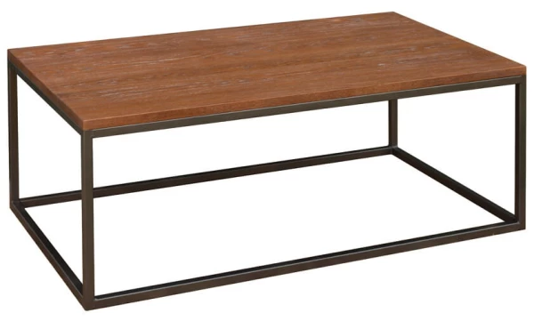 Whether you are looking for a coffee table on which you can place food and drinks, or a side table for a lamp, vase, or other decorative items, this table with its sturdy top will be a great choice. Your Boca Raton Coffee Table pairs a real wood, 54"W x 30"D top with a sleek black metal base.Available in nine different types of wood and an array of hand-applied stains and paints, you are encouraged to customize your Boca Raton Coffee Table to be a true one-of-a-kind piece. To order the conversation piece as pictured, choose a Terra Cotta wood finish over standard Oak.