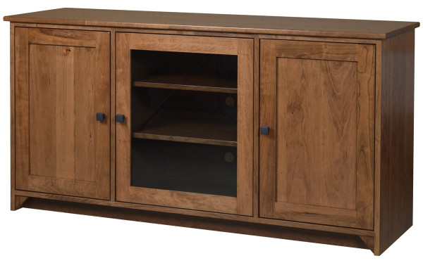 Recognizing that every space is unique, our Bremerhaven Media Stand is available in three sizes. Choose the one that best suits your room, ensuring a perfect fit and maximizing the visual impact of your entertainment area. Tailor the TV stand to your specific needs with three cabinets featuring adjustable shelving. Whether you have gaming consoles, DVDs, or decor items to display, this feature allows you to create a personalized and organized entertainment space.Embrace the charm of rustic aesthetics with a design that seamlessly fits into both traditional and contemporary settings. The carefully crafted details and sturdy construction make it a standout piece in any room. To order the Bremerhaven Media Stand as shown, choose Rustic Cherry with a hand-applied Cinnamon Stick stain.