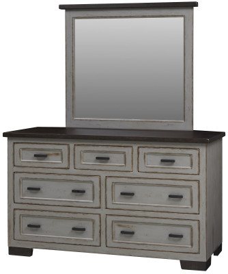 Our Calabasas Bedroom Collection is trending for a look that is rustic yet refined. This dresser is the perfect addition to your master bedroom, whether you are sharing it with a spouse or keeping it all to yourself. Seven drawers are dovetailed for longevity, and undermounted glides offer an effortless full extension and soft closure with each use. A large oversized, mirror is included with the Calabasas Dresser.A thick planked top with saw mark distressing adds a rustic element, while clean lines add modern sophistication. Crafted from the solid hardwood of your choice, the Calabasas Mirrored Dresser as pictured combines a painted Brown Maple hardwood with Rustic Quartersawn White Oak elements. Keep this look for your own home, or redesign the piece as you see fit.