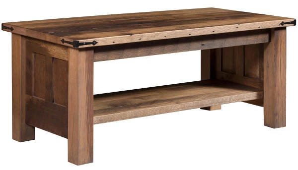 Lend some rustic flavor to your living room or bedroom with our wooden Casselberry Reclaimed Coffee Table. Featuring an expansive 46" wide top and broad open shelf, this piece features ample storage room and a versatile style. Part of the matching Casselberry Reclaimed Living Room Collection, your rectangular conversation table is adorned with the character of salvaged barn wood and black metal corner clips.A true work of art, the Amish handcrafted Casselberry Reclaimed Coffee Table will become an instant favorite in your home.
