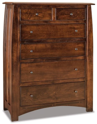 Featuring six drawers mounted to full extension slides, the Castle Rock 6-Drawer Bureau is an excellent pick for anyone who needs to add extra storage to their master bedroom. Use this chest to store clothes, extra bed linens, or any other necessities that you see fit. This piece is hand crafted by Amish artisans using solid wood and mortise and tenon joinery to ensure that it will last for generations to come. Along with this, each drawer will extend fully to allow you to make use of every inch of space.Use the menu that is provided to select the wood, stain, and hardware that you prefer. If you would like your Castle Rock 6-Drawer Bureau to look like it is featured in the photo, simply select Brown Maple as your wood and Winter Bark for your stain.