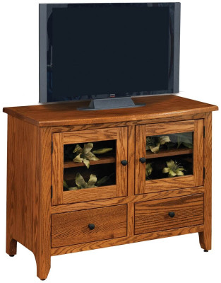 Pictured in classic Oak, the Dyersburg TV Stand is a traditional vision. Angled feet and straightforward lines give it the characteristic of Shaker style living room furniture, and the solid wood cabinet will come to you directly from our Amish shop, not from a warehouse. Available in two sizes, standard features include a pair of plain glass doors, an adjustable wooden shelf, and two soft-closing drawers.In our online options menu, you may customize the Dyersburg TV Stand to perfectly complement your home. We offer this piece in eight different hardwoods including Oak, Brown Maple, Rustic Cherry, Elm, Cherry, Quartersawn White Oak, Hickory, and Maple.