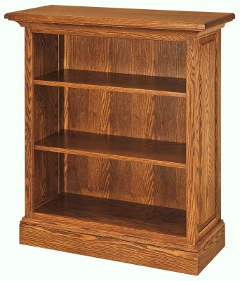 Carefully handcrafted by Amish artisans in the USA, the Edmore Bookshelf is a beautiful addition to a living room or office. Attractive molding and classic raised paneling brings nothing but beauty to your home and collections. Our Amish craftsmen make these solid wood bookcase units sturdy to hold all of your books on the 1-inch-thick shelves.Select the wood and hand-rubbed stain for that perfect look for your office or home. Your Edmore Bookshelf will be handcrafted to order. Do you prefer the 40" or 65" tall bookcase as pictured? Consider standard Oak topped in our hand-applied Cinnamon Stick wood finish.