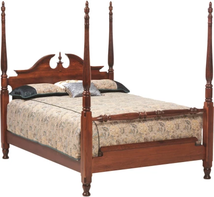 Durable joinery and solid wood construction combine in our Elizabeth's Tradition Cherry Four Post Bed. To prevent slat movement or fatigue, each bed slat is securely dovetailed into the side rails of your poster bed. Queen, King, and California King sized four poster beds include added support with center legs under the slats. Queen beds include two support legs while King poster beds boast a support leg under the center of each slat.Using the online options menu, indicate preferred specifications for the Elizabeth's Tradition Four Post Bed. To obtain the pictured look on your four poster bed, choose Cherry with our popular Christmas Cloves stain.