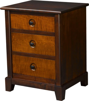 Capture its natural beauty with ease when you choose to feature the Etowah 3-Drawer Nightstand in your bedroom. Sturdily erected from American hardwood by Amish builders, this piece features three full extension drawers equipped with side mount slides that will provide you with a strong frame to hold your nighttime necessities. Optional Tiger Maple drawer fronts feature distinctive markings and knots to bring out the naturalistic grace of this one-of-a-kind piece.Available in an array of stain and wood options, the Etowah 3-Drawer Nightstand, shown in a combination of Brown Maple and Tiger Maple, is customized specifically for you. Compliment your purchase of the Etowah 3-Drawer Nightstand with a matching bed or dresser from the same collection.