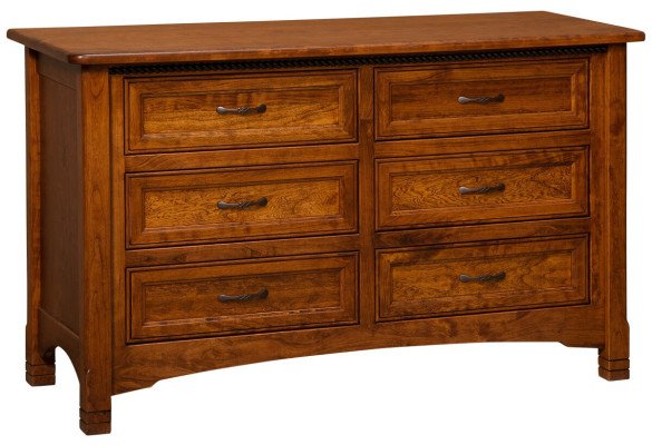 Rope molding, mitered drawer fronts, and carefully routed feet combine to create our solid wood dresser with an optional changing table. The Great Bear 6-Drawer Dresser is perfect for storing your little one's clothing, shoes, and accessories with its sturdy, dovetailed drawers. Full extension slides affixed to each drawer ensure ease of access to the items stored within this solid wood dresser for baby. Standard with a 1-inch thick top and roundover edges, you may also add a removable changing table topper and pad.If you wish to obtain the pictured look on your Great Bear Baby Dresser, select Cherry with our Terra Cotta finish option. No matter the look you choose, our Amish artisans will ensure this 6-drawer solid wood dresser is crafted according to your specifications.