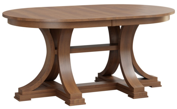 Crafted from solid hardwood and meticulously built to order, this stunning table features gracefully curved pedestals with a bold, structured base. Its smooth, oval top enhances the refined design, while the substantial construction ensures long-lasting strength and beauty. The 42" x 66", 42" x 72", 48" x 66", and 48" x 72" versions can extend with up to four 12-inch leaves, providing ample space for guests. The 26 1/2-inch apron clearance ensures comfort and legroom, making every dining experience relaxed and enjoyable.Customization is at the heart of this Amish-made masterpiece, allowing you to choose from a variety of premium hardwoods and hand-applied finishes to match your décor. Whether you desire a warm, traditional look or a sleek, contemporary style, the Harcourt Double Pedestal Table is built to reflect your taste and last for generations.