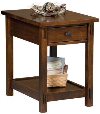Our Amish woodworkers are experts at crafting the finest furniture and will work to create the look you want in your set of occasional tables. If you appreciate the Hillsdale Open End Table with the old-fashioned tenons showing, we will create an entire set for your living room. With the open style look the auxiliary wooden end table has a single drawer at the top and a fixed shelf with a slight lip on it, at the bottom. While it's small in size but big in usefulness, handmade quality, and spiffy style, this end table will benefit you for decades.Shown in Hickory with a Cafe Americano wood finish, you may choose the wood type and stain color for your collection of occasional tables in the Hillsdale Collection. Each and every Hillsdale Open End Table is handmade to order.