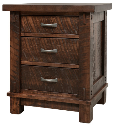 Countryside's Lakemont Nightstand offers three spacious drawers for holding all your bedside essentials. With convenient full extension slides, every square inch of the drawer box can be utilized. The perfect companion to matching storage bed, this night table measures 26"W x 21"D x 31"H overall.Pictured in a popular Southern Sorghum, the Lakemont Nightstand is available for purchase in any offered Rough Sawn Maple finish. Indicate your selections using the options menu before adding to the online shopping cart. All Lakemont Bedroom pieces will be crafted from kiln-dried Rough Sawn Maple hardwood.