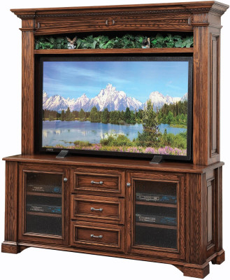 No matter what personalities reside in your home, our Lockwood Entertainment Center can be a point of agreement. It should be easy to decide on a piece of handcrafted, solid wood, Amish furniture. The second point of the agreement will be elegant, but the understated design of our Lockwood with grooved corners, crown molding, raised panels, and an arching base. Now all you need to determine is the hardwood species and stain that should become your Lockwood Entertainment Center and put Countryside's craftsmen to work building it.Dovetailed drawers come complete with media dividers and open on full-extension slides. Your base doors are mortise and tenon with lovely seedy glass inserts. Shelves in the base are adjustable and your hardware can be customized with the menu. Design the Lockwood Entertainment Center that suits you and Countryside will take care of the rest.
