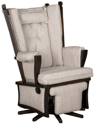 This chair combines a smooth 360-degree swivel with a gentle gliding motion, allowing you to find the perfect position with ease. The flip-out footrest extends effortlessly, providing a comfortable spot to rest your legs without needing an extra ottoman. At Countryside, you create a chair that perfectly complements your home decor. The customizable upholstery options include a range of durable fabrics and luxurious leathers, allowing you to tailor the chair’s look to your personal style.Handmade to order and shipped fully assembled, this Mallow Swivel Glider with Footrest is ready to be a standout piece in your living room, nursery, or any relaxation space. With every detail crafted by hand, this chair is more than just furniture; it’s a work of art and a testament to timeless American craftsmanship.