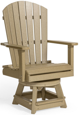 Constructed using high-quality poly lumber, this Maya Bay Fanback Swivel Chair offers exceptional resistance to the elements, ensuring it will maintain its beauty and strength through years of outdoor use. Poly lumber is a sustainable material made from recycled plastics, making it an environmentally friendly choice without compromising on durability.Whether you're engaging in lively conversations or simply enjoying a meal, the smooth swivel motion allows you to easily interact with your guests and surroundings without having to leave your seat. Experience the perfect blend of durability, style, and comfort with our Maya Bay Fanback Swivel Chair.