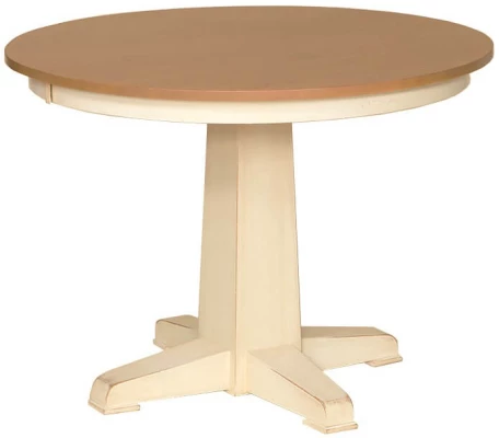 A perfect round top with a simple apron paired with a lovely tapered single pedestal creates the Strongsville Pub Table. Transitional in style, your hardwood and finish combination determine the vibe. A two-tone finish on Brown Maple speaks to a trendy French Country appeal, whereas the Amish table would be decidedly Mission in Quartersawn White Oak. Available in seven round top sizes, the Strongsville Pub Table is offered as a solid top or with optional geared expansion slides. Four sizes accept one or two extension leaves when needed.Build your one-of-a-kind table to the size, height, and overall design you most prefer. The Strongsville Pub Table will be handmade just for you.