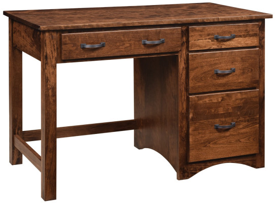 A Sun City Student Desk is the perfect centerpiece for your home office. Enjoy refreshingly casual yet durable designs that blend seamlessly with cottage, mission, and farmhouse decor. Spread out with a computer and paperwork on the 45" wide desktop as you take on your next project or assignment, pay bills, or surf the web. Four dovetailed drawers, including a letter-side file cabinet, open to full extension and close softly on concealed slides.Available in a number of sustainably harvested wood types, the Sun City Student Desk is pictured in a character-rich Rustic Cherry. Customize your single pedestal desk and add a matching file cabinet and bookcase to complete the made-to-order set.
