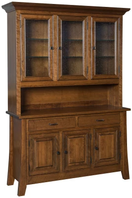 Another feature of the upper cabinet of your Zippelli Modern China Hutch is the touch-controlled lighting. Glass shelves allow light to permeate the entire hutch casting a lovely glow over china and crystal on display within. An open deck allows you to use the surface of the buffet cabinet below for serving or additional display. In your buffet base, two durable dovetailed drawers open on full-extension, undermount slides to permit access to the entire drawer. Three doors below provide concealed storage for your dining room or kitchen essentials. Throughout your Contemporary china cabinet, our Amish artisans have used mortise and tenon joinery to ensure a long life of service.Choose your options from our Create Your Piece menu and let our craftsman begin work on your Zippelli Modern China Hutch today. To order as shown, choose Cherry with a Southern Pecan wood finish.
