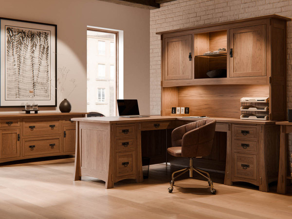Create a refined, highly functional workspace with the Palo Alto Office Collection, a cohesive set of Amish-made office furniture crafted entirely from solid hardwood.
